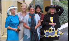 | Goodwood Ladies in their 'Revival' outfits prepare to start the day While the Saturday weather was not the best, our spouses did their best to brighten things up. Five couples, from Bellingham and members of our car group came together for this event and we had great fun in the process. The complete Goodwood photo albums can be found here (Remember to scroll down to the bottom right of the page to find the sub-albums). My Goodwood 2005 page can be found here. | ![]() |